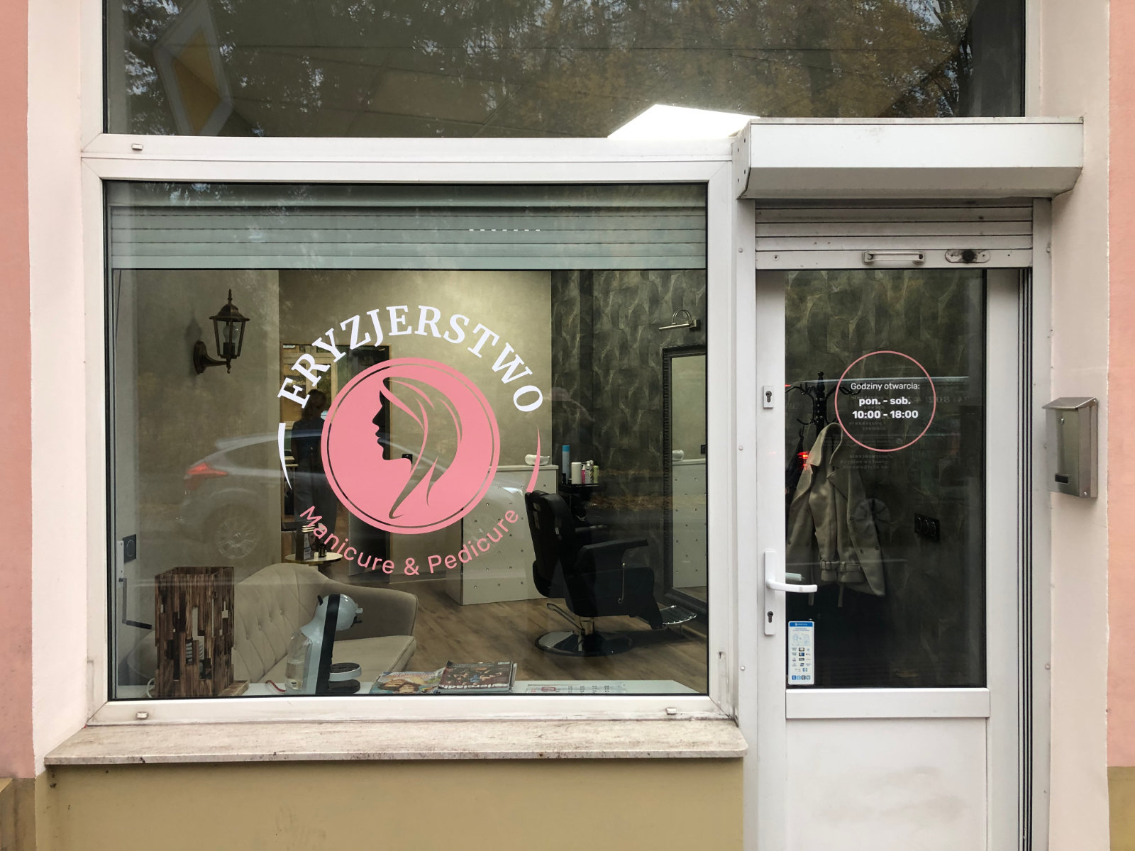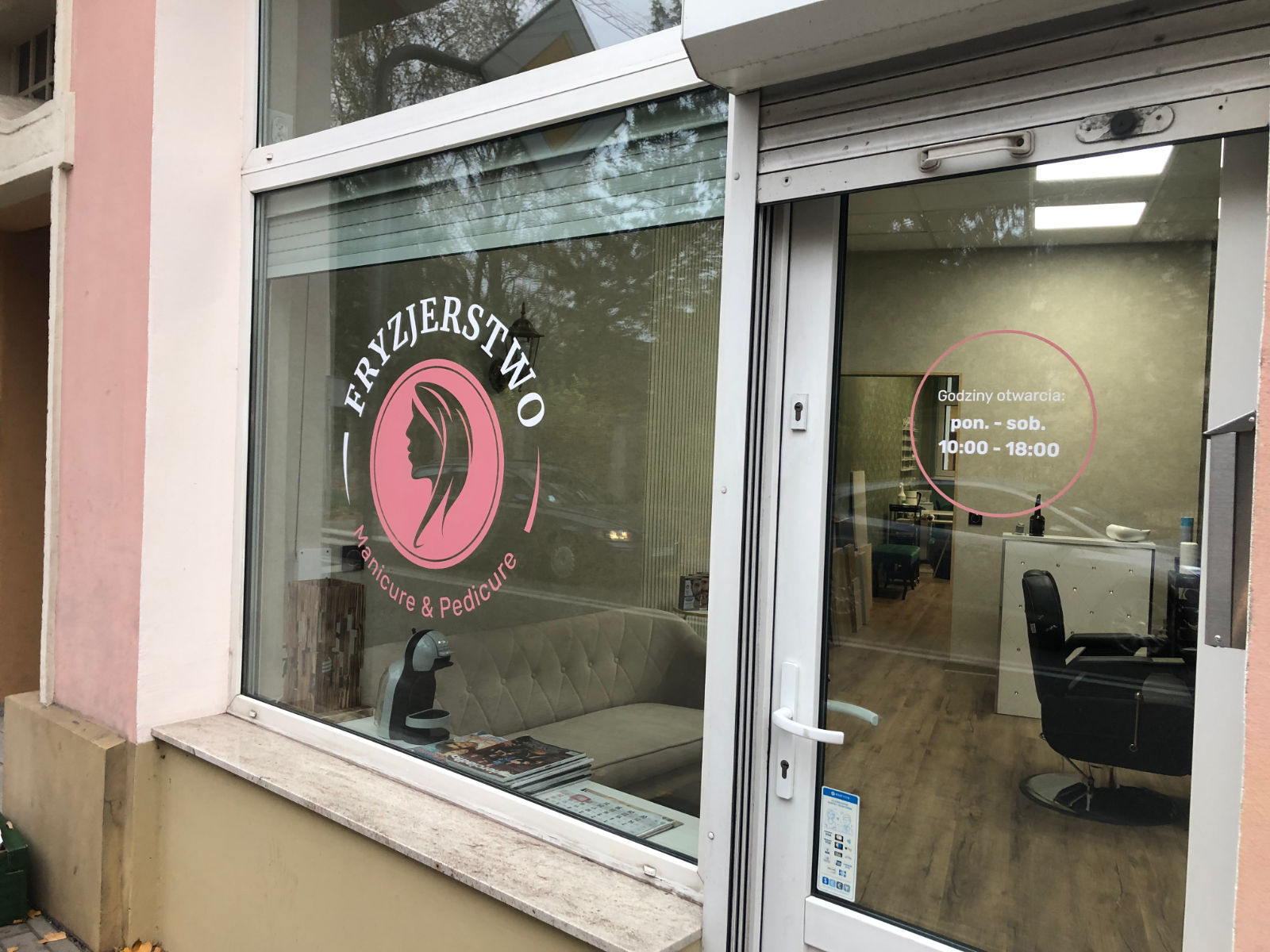 Poza samym projektem wykonuję także fizyczny montaż reklamy na witrynach sklepowych, szybach samochodów oraz innych elementach karoserii.